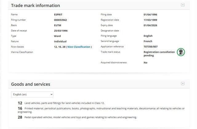 Lotus Group filed Esprit trademark last month